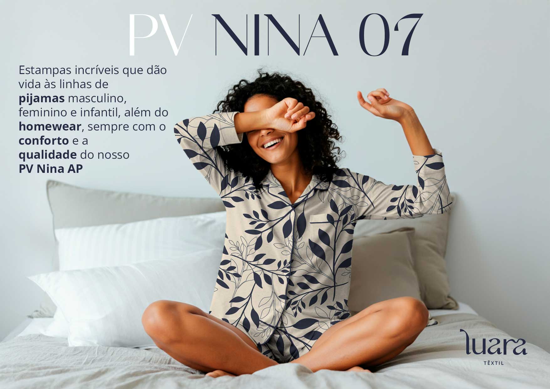 Estampas incríveis que dão vida às linhas de pijamas masculino, feminino e infantil, além do homewear, sempre com o conforto e qualidade do nosso PV Nina.